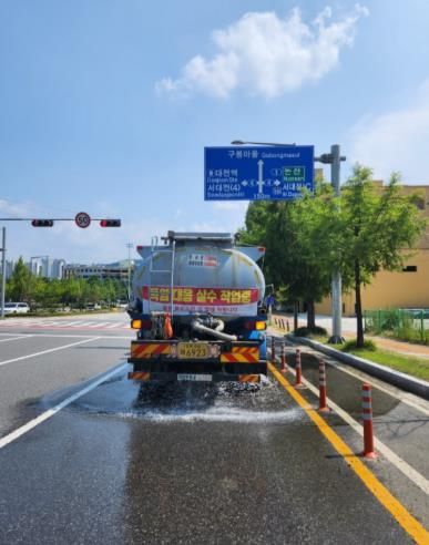 특히 무더위가 집중되는 오후 1시부터 5시까지 주요 도로에 살수 작업을 집중적으로 펼쳐, 도심 체감 온도를 낮추기 위해 노력하고 있다.