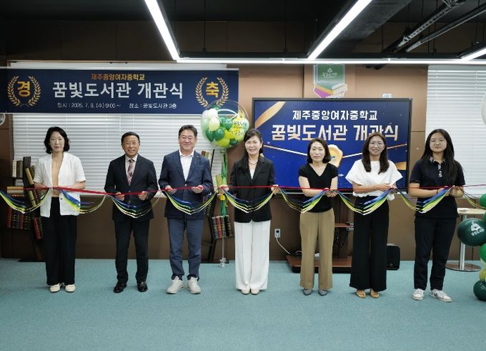 (아름다운교육신문) 제주도교육청 제주중앙여자중학교에서는 9일 오전 9시 학생들의 배움의 터전이자 지역과 함께 호흡하는 열린 공간으로 새롭게 태어난 ‘꿈빛도서관’의 새로운 출발을 알리기 위해 학생, 보호자와 지역 관계자 등이 참석한 가운데 개관식을 개최했다.