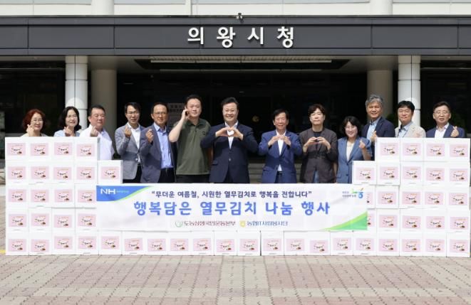 (아름다운교육신문) 의왕시는 지난 9일 NH농협 IT사랑봉사단으로부터 무더운 여름철을 보내고 있는 어르신들의 지원을 위한 열무김치 120박스(5kg 상당)를 기탁받았다고 밝혔다.