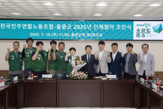 (아름다운교육신문) 울릉군과 전국민주연합노동조합은 7월 10일 울릉군청에서‘2025년 단체협약 조인식’을 열고, 단체협약을 체결했다.