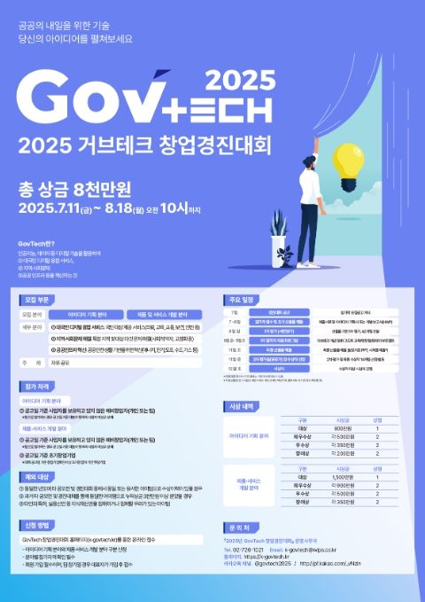 (아름다운교육신문) 과학기술정보통신부는 2025년 정부기술(GovTech) 창업경진대회 참가자를 7월 11일부터 8월 18일까지 모집한다고 밝혔다.