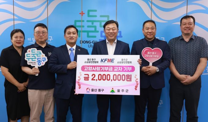 (아름다운교육신문) 울산 동구는 울산 동구 소상공인연합회(지부장 남기환)와 울주군 소상공인연합회가(회장 김창욱) 7월 10일 오전 11시에 고향사랑기부제 활성화와 지역 간 상생 발전을 위해 각 지자체에 200만 원씩 기부했다고 밝혔다.