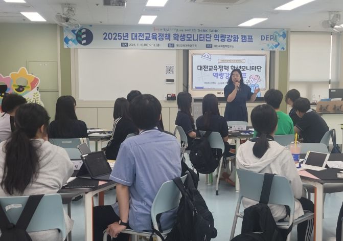 (아름다운교육신문) 대전시교육청 대전교육정책연구소는 7월 10일부터 11일까지 대전교육과학연구원 창의인성체험실에서 ‘2025년 대전교육정책 학생모니터단 역량강화 캠프’를 개최했다고 밝혔다. 이번 캠프는 중·고등학교 학생 30명으로 구성된 ‘2025년 대전시교육정책 학생모니터단’의 역량을 강화하고, 학생이 교육 현장의 문제를 진단하며 정책 대안을 제안할 수 있도록 지원하기 위해 마련됐다.