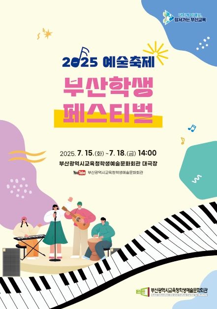 (아름다운교육신문) 부산광역시교육청학생예술문화회관(관장 이해선)은 7월 15일부터 18일까지 4일간, 매일 오후 2시부터 회관 대극장에서 ‘2025 부산학생페스티벌’ 을 개최한다.