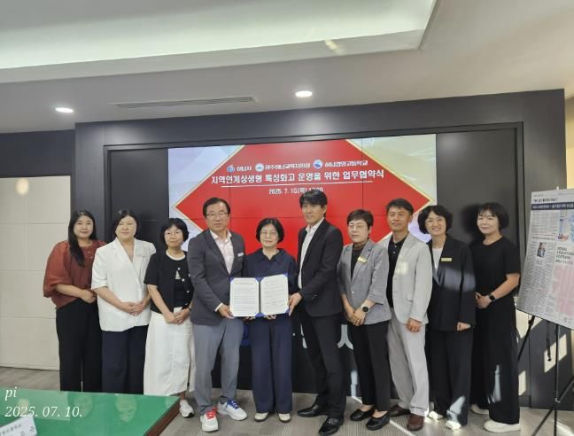 (아름다운교육신문) 경기도광주하남교육지원청, 하남시, 하남경영고등학교는 7월 10일 하남시장 집무실에서 ‘2025 지역 연계 상생형 특성화고 운영을 위한 3자 업무협약(MOU)’을 체결했다.