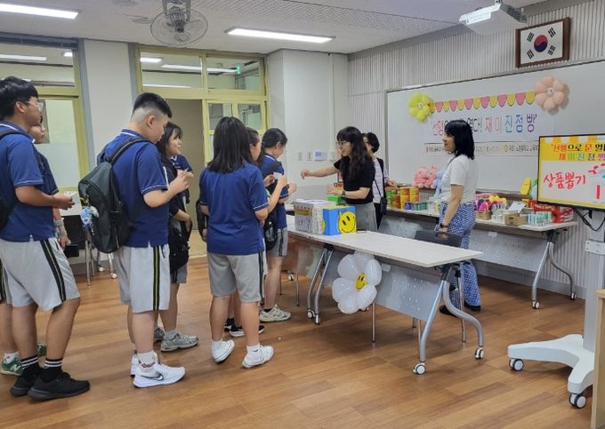 (아름다운교육신문) 제주도교육청 노형중학교는 8일부터 11일까지 나흘간 학생맞춤통합지원 교육복지 프로그램 ‘재미진 점빵, 선행으로 문 열다!’ 행사를 운영했다.