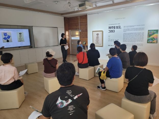 (아름다운교육신문) 제주도교육청 하귀초등학교는 9일 ‘빛상상미술관’에서 보호자를 대상으로 ‘학생 참여형 찾아가는 미술관, 제주를 보고 그리다’ 작품 해설 프로그램을 운영했다.