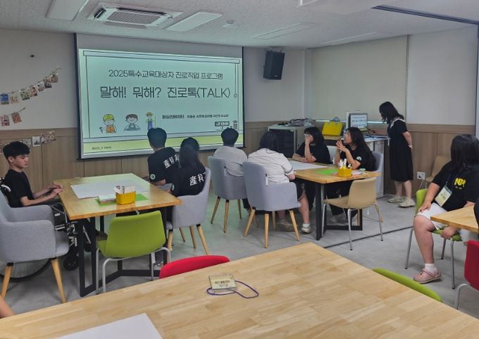 (아름다운교육신문) 영동교육지원청은 10일 영동교육지원청 학교지원센터 세미나실에서 중고등 특수교육대상학생과 특수교사를 대상으로 ‘말해!뭐해? 진로톡(TALK)’ 프로그램을 성공적으로 운영했다.