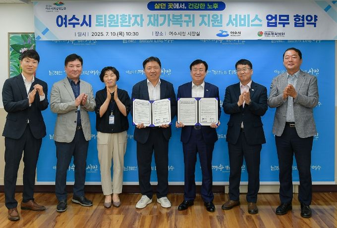 정기명 여수시장은 “어르신들이 살던 곳에서 건강하게 생활할 수 있도록 지원체계를 강화해 나가겠다”며 “여수제일병원과의 협약을 통해 지역 내 돌봄 공백을 최소화하고, 안전한 지역사회 복귀가 이뤄지도록 최선을 다하겠다”고 말했다.