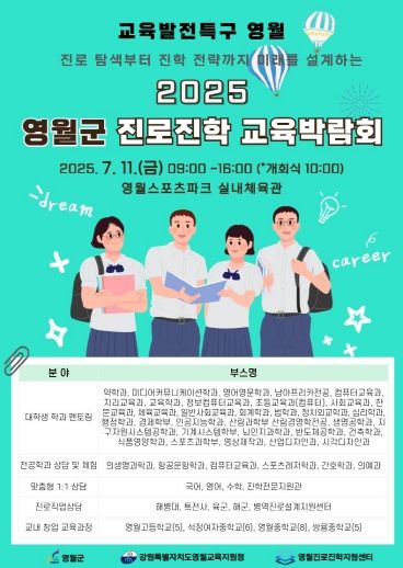 (아름다운교육신문) 영월교육지원청은 7월 11일 영월스포츠파크 실내체육관에서 ‘2025 영월군 진로진학 교육박람회’를 개최했다.
