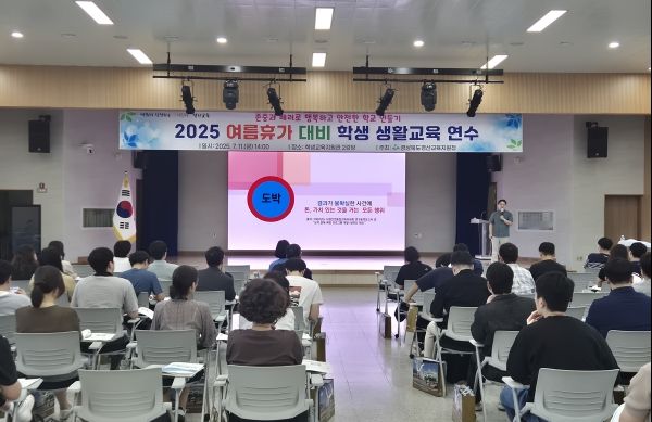 (아름다운교육신문) 경상북도경산교육지원청(교육장 박경화)은 2025년 7월 11일 오후 2시부터 경산교육지원청 학생교육지원관 4층 2강당에서 관내 초·중·고·특수학교 생활교육 담당 부장교사 60여 명을 대상으로 '2025 여름휴가 대비 학생 생활교육 연수'를 실시했다.