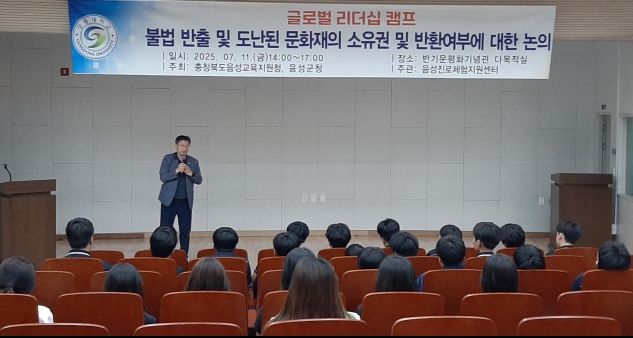 (아름다운교육신문) 반기문 전 UN사무총장을 배출한 충북 음성군, 그 자취를 따라 음성 관내 청소년들이 국제사회의 미래 리더로 성장할 수 있는 소중한 기회를 가졌다. 음성교육지원청(음성진로체험지원센터)은 지난 7월 11일, 반기문평화기념관에서 ‘2025 글로벌 리더십 캠프’를 성공적으로 개최했다.