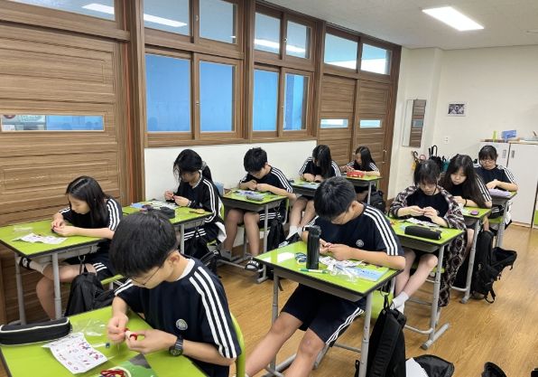 아침 등교 후 담임교사와 함께 순국선열 및 호국영령들을 추모하고 마음에 새기는 시간을 가졌다. 또한 사회, 역사 교과 시간을 활용하여 호국 보훈과 관련된 영상을 시청하여 학생들과 소감을 나누었고, 태극기를 활용한 키링을 제작하는 활동을 통해 태극기가 지닌 의미를 되새겼다.