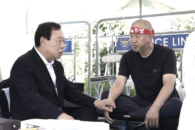 최민호 시장은 이날 국가공무원노조 해수부지부 윤병철 노조위원장을 방문한 자리에서 가장 먼저 무더위 속에서 이어지는 단식으로 인해 건강을 잃을 수 있다고 우려했다.