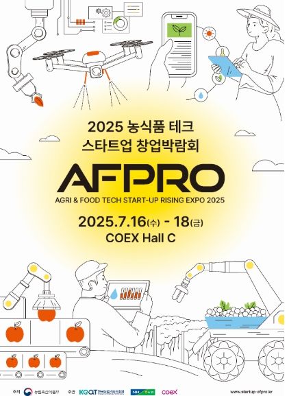 (아름다운교육신문) 농림축산식품부는 농식품 분야 첨단기술을 홍보하고, 농식품 분야 유망 창업기업의 판로확보와 투자유치를 지원하기 위해 '2025 농식품 테크 스타트업 창업박람회(AFPRO 2025)'를 7월 16일부터 18일까지 3일간 서울 삼성동 코엑스(Hall C)에서 개최한다.