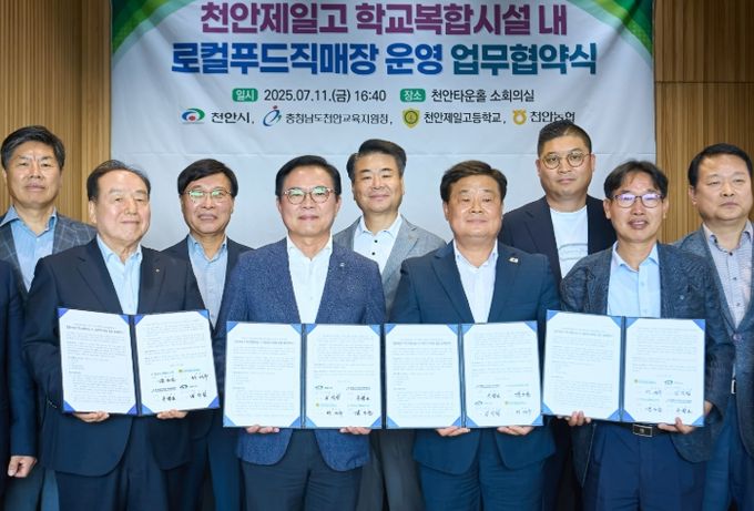 천안타운홀에서 열린 협약식에는 김석필 천안시장 권한대행 부시장, 이병도 천안교육지원청 교육장, 황명주 천안제일고등학교장, 윤노순 천안농협 조합장 등이 참석했다.