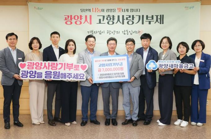 (아름다운교육신문) 광양시는 7월 14일 광양새마을금고와 광양시새마을금고 임직원들이 새마을금고여수시협의회와 함께 고향사랑기부제 상호 기부에 동참해, 총 700만 원의 고향사랑기부금을 기탁했다고 밝혔다.
