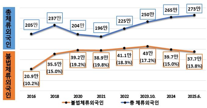 법무부는 2023년부터'불법체류 감축 5개년 계획'을 수립하여 다각적인 상시 단속 체계를 가동하고 있다.