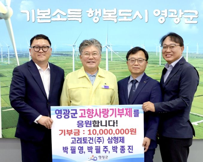 (아름다운교육신문) 지난 11일, 고려토건(주) 박필영, 박필주, 박종진 삼형제가 고향사랑기부금 1천만 원을 기탁하여 영광 발전을 위한 따뜻한 나눔을 실천했다.