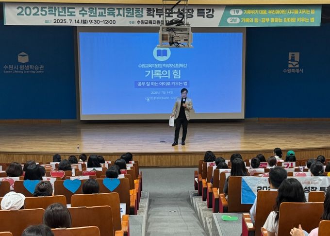 (아름다운교육신문) 경기도수원교육지원청은 7월 14일, 수원시평생학습관 대강당에서 관내 학부모 200여 명이 참석한 가운데‘2025 학부모 성장 특강’을 개최했다고 밝혔다.
