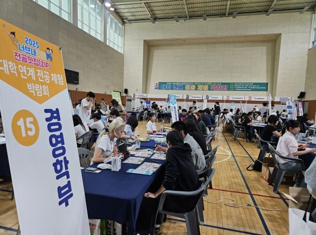(아름다운교육신문) 홍천교육지원청은 7월 12일 12시 30분 홍천군국민체육센터 2층 다목적체육관에서 홍천권역(홍천, 횡성, 인제) 중·고 학생, 학부모, 교원을 대상으로 ‘2025 너브내꿈길 전공맛집(ZIP) 대학 연계 전공 체험 박람회’를 개최했다.