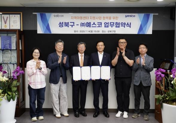 이날 협약식에는 이승로 성북구청장과 ㈜예스코 김환 대표이사를 비롯한 관계자들이 참석해, 민관이 함께 지역사회의 지속 가능한 아동 돌봄 체계 강화를 위해 뜻을 모았다.