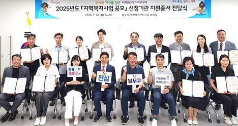 (아름다운교육신문) 대구 달서구는 지난 14일 월성1동 행정복지센터에서 2025년도'희망달서 지역복지사업 공모'선정기관에 대한 지원증서 전달식을 열었다.
