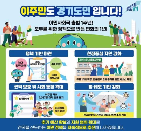 김원규 경기도 이민사회국장은 “이민사회국 출범 이후 도민과 이주민이 함께 성장하는 사회를 만들기 위해 다방면의 정책을 추진해 왔다”며 “앞으로도 ‘이주민도 경기도민입니다’라는 원칙 아래, 전국을 선도하는 이민정책을 통해 누구나 존중받고, 함께 살아가는 포용사회를 실현하겠다”고 말했다.