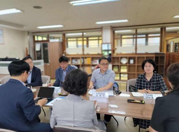 이번 방문은 도교육청 김영진 기획조정실장을 대표로 부서 관계자 6명이 함께 참여했다. 방문 일행은 학교장과 교감, 행정실장, 교사 등 학교 주요 관계자를 만나 현장의 지원 요청사항을 경청하고, 학교업무 개선 정책의 실효성 제고를 위한 구체적 방안을 논의했다.