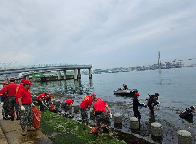이번 활동에는 해병대전우회 회원 30여 명이 참여했으며, 잠수 장비를 활용해 바닷속에 쌓인 그물망과 각종 해양 쓰레기를 인양하며 쾌적한 해양환경 조성에 힘썼다.