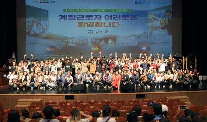 17일 고창군에 따르면 전날(16일) 오후 고창문화의전당에서 ‘외국인 계절근로자 환영식과 근로자 의무교육이 열렸다.