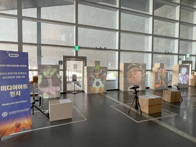 학생들은 대상물 표면에 빛으로 이루어진 영상을 투사하는 프로젝션 맵핑(Projection Mapping) 기술을 활용해 작품 5점을 제작했으며, 다양한 형태로 쌓은 박스 오브제에 모둠별로 제작한 영상을 구현했다.