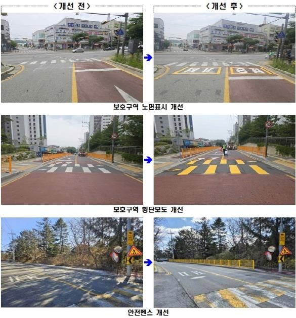 운영체계 개편과 별도로 교통약자 보행 안전을 강화하기 위한 교통안전시설 개선도 시급하다. 시는 우선 어린이와 노인 등 교통약자의 보행사고를 예방하고 안전한 보행 환경을 조성하기 위해 올해 하반기부터 보호구역 32개소에 대한 교통안전시설 개선사업을 중점적으로 추진할 계획이다.