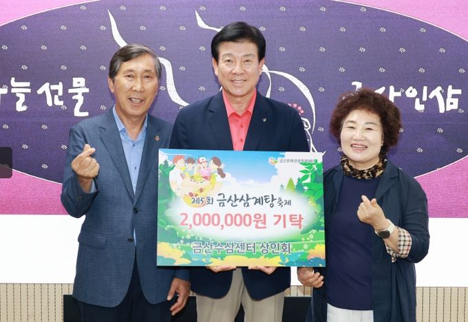 박범인 금산군수는 “금산수삼센터 상인회의 뜻깊은 기부에 감사드린다”며 “하늘선물 금산인삼에 천년장수 은행열매를 더한 금산삼계탕 축제가 성공적으로 개최될 수 있도록 최선을 다하겠다”라고 말했다.