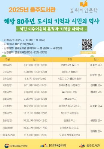 수강을 희망하는 울산시민은 오는 8월 8일까지 울주도서관 누리집에서 신청하면 된다.