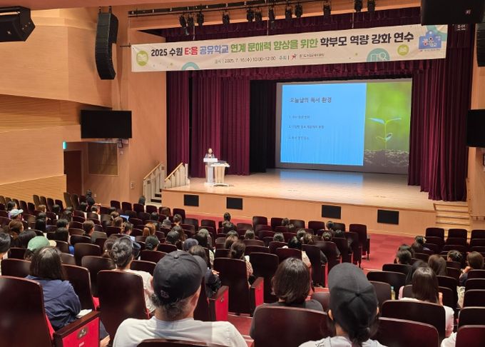 우선 지난 7월 16일에는 학부모 200여 명을 대상으로 ‘문해력 향상을 위한 학부모 역량 강화 특강’을 운영했다. 특강은 여름방학을 앞두고 가정에서 실천할 수 있는 문해력 향상 방법을 안내하는 데 중점을 두었으며 ▲도서관 나들이 ▲그림책 활용 독서 활동 등 실천 가능한 사례 중심의 강의로 학부모들의 높은 관심을 끌었다.