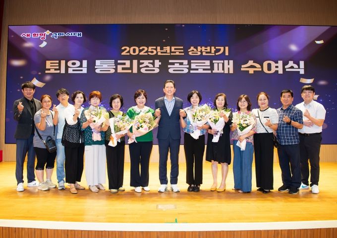 (아름다운교육신문) 구미시는 7월 17일 시청 대강당에서 ‘2025 상반기 퇴임 통․리장 공로패 수여식’을 개최하고, 지역사회 발전을 위해 오랜 기간 헌신한 통․리장들에게 감사를 전했다.