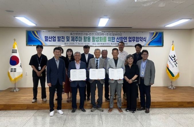(아름다운교육신문) 제주특별자치도 축산생명연구원은 16일 전주기전대학, 주식회사 토탈바이오와 제주마 활용 활성화 및 승용마 산업 발전을 위한 산학연 업무협약을 체결했다.