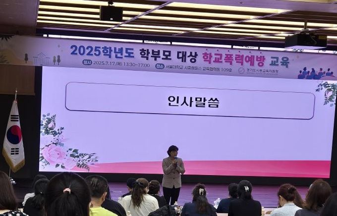 (아름다운교육신문) 시흥교육지원청은 2025년 7월 17일 서울대학교 시흥캠퍼스 교육협력동에서 관내 초·중·고등학교 학부모를 대상으로 '2025학년도 학교폭력예방 학부모 교육'을 개최했다.