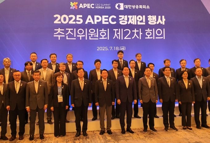 18일 경주 라한셀렉트에서 개최된 APEC 최고경영자(CEO) 서밋(Summit) 추진위원회 2차 회의에는 최태원 대한상공회의소 회장(2025 APEC CEO 서밋 의장), 김기현 국회 APEC 정상회의 지원 특별위원회 위원장, 양금희 경상북도 경제부지사, CEO 서밋 집행위원 등 30명이 참석해 경제인 행사 준비 현황을 논의하고, 행사 현장을 자세히 점검했다.