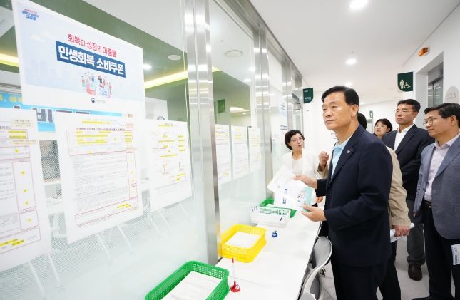 (아름다운교육신문) 이승로 서울 성북구청장이 민생회복 소비쿠폰 지급을 앞두고 18일 돈암1동 주민센터를 방문해 현장 준비 상황을 점검했다.