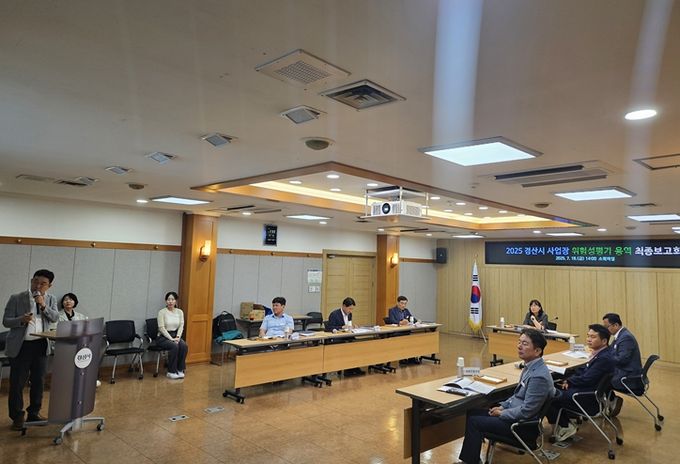 (아름다운교육신문) 경산시는 18일 소회의실에서 '2025 경산시 사업장 위험성평가 용역' 최종보고회를 개최했다. 이날 보고회에는 부시장을 비롯해 건설안전국장, 안전총괄과장, 회계과장, 체육진흥과장, 농정유통과장, 환경시설사업소장 등 10여 명의 관계부서장이 참석해 용역 추진 경과와 주요 결과를 공유했다.