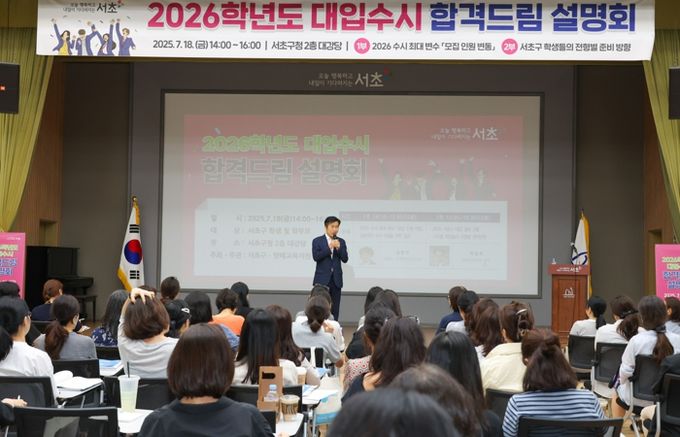 (아름다운교육신문) 서울 서초구가 지난 18일 오후 2시 서초구청 2층 대강당에서 대입 수시전형 전략을 알려주는 ‘2026 대입 수시 합격드림 설명회’를 성황리에 개최했다고 밝혔다.
