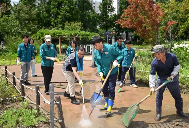 (아름다운교육신문) 20일 이채권 남구부구청장은 7월 19일 집중호우로 침수 피해를 입은 태화강 둔치를 현장방문하여 남구청 공무원과 함께 환경정비를 실시했다.