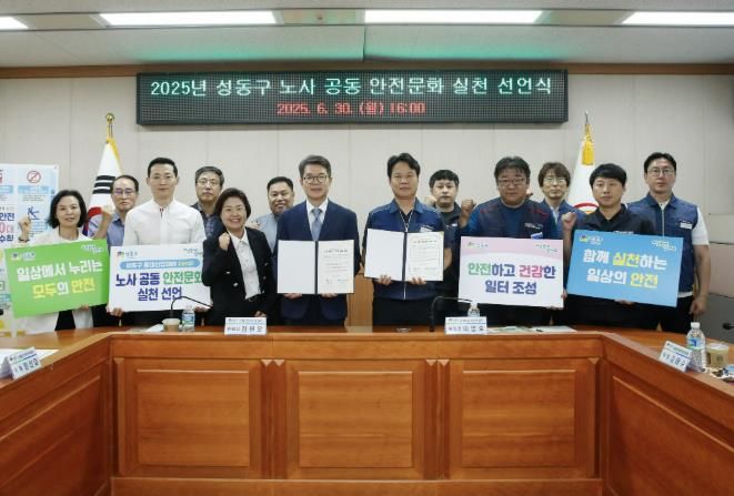 먼저, 정원오 성동구청장과 근로자 대표 등 12명이 지난 6월 30일 ‘노사 공동 안전문화 실천 선언식’을 개최하고, 산업재해 예방을 위한 성동구의 실천 의지를 공식화했다. 이들은 산업현장의 유해·위험요소를 철저히 점검하고, 스스로 위험을 인식하고 관리하는 ‘자율안전관리체계’ 확립에 뜻을 모았다.