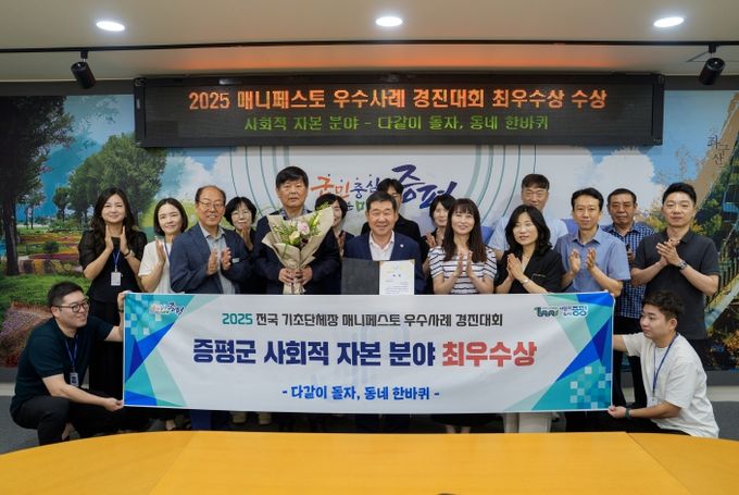 (아름다운교육신문) 충북 증평군이 지난 24일 경북 안동시 국립경국대학교에서 열린 ‘2025년 전국 기초단체장 매니페스토 우수사례 경진대회’에서 사회적자본 분야 최우수상을 수상했다.
