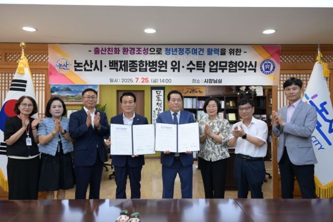 이날 협약식에 양 기관 관계자들이 참석한 가운데, 백성현 논산시장과 이재성 백제종합병원장은 산모와 신생아의 건강을 위한 안전하고 전문적인 산후조리 서비스 제공을 위해 상호 협력할 것을 공식화했다.