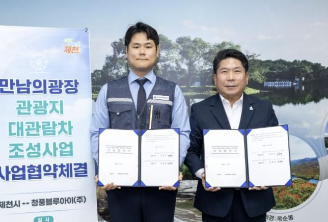 제천시 관광시설 민자유치로 처음 체결된 이번 사업협약을 통해 민간투자자가 약 70억원을 투자해 만남의 광장 관광지 일원 약 5,557㎡ 부지에 높이 72m, 승차인원 228명(케빈 6인승×38대)의 대관람차와 카페, 사무실 등 관광객을 위한 부대 시설이 조성될 예정이다. 대관람차가 완공되면 청풍호를 대표하는 새로운 랜드마크가 될 뿐만 아니라, 지역경제 활성화에도 크게 기여를 할 것으로 기대된다.