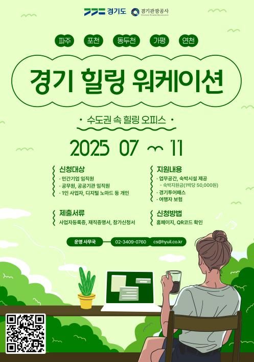 장향정 경기도 관광산업과장은 “워케이션을 경험하려면 근로자가 먼 지역으로 이동해야 하는 경우가 많은데 가까운 경기도에서 새로운 일상을 경험할 기회를 제공하고자 한다”며 “워케이션을 통해 업무 효율을 높이고 경기북부의 다양한 매력도 느낄 수 있기를 기대하며 많은 관심을 부탁한다”고 말했다.