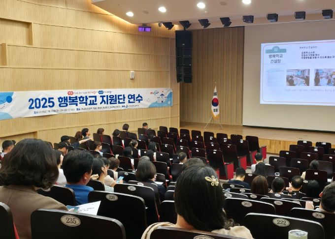 연수에는 교육지원청별 행복학교 지원단 125명이 참석해 행복학교의 일반화와 지역 교육 생태계 확장 방안을 모색하고, 교육지원청과의 협력 체계를 구축하는 방안을 논의했다.